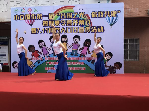 迎着七月的朝阳,活动于当天上午九点正式开始。开幕式舞台表演部分,首先由前期参与中心服务的青少年舞蹈小组组员带来《华丽的出场》舞蹈表演,接着有英姿队、广外林雪莹等义工,阳光学堂杨梦洁小朋友、曹怡小朋友以及林慈函小朋友带来《24式太极》、《多情的东江水》、《吹泡泡+积木乐园》、《十个小印第安人+小毛驴》等精彩演出。