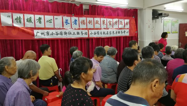 (本网讯 卢莉娟)在小谷围街道办事处的指导下,广州市小谷围街社工服务站联合广州市番禺区敬老康乐协会、小谷围街居家养老服务综合平台于2019年5月28日上午9:00-11:00,在北亭开展了“情暖耆心”长者福利政策宣传暨社区防诈骗知识教育宣传公益活动。