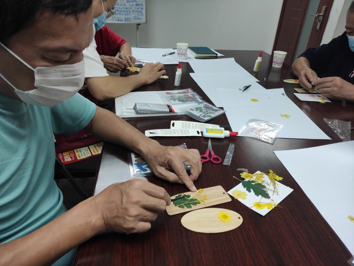 本次小组参与的长者一起体验了鲜花压制、压花书签、压花贺卡及压花相册等压花手作手工的制作,小组过程中互相交流分享,一起完成了非常精美的压花手作成品,学以致用,制作成品将助力社区长者探访服务,为社区长者送上祝福,共同营造了和谐互助的社区氛围。