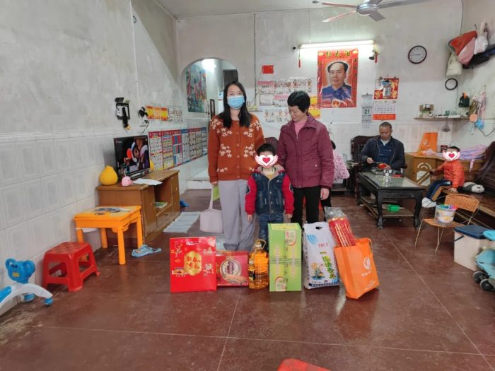 本次活动充分利用寒假、春节这一重要节点,为各镇(场)30户留守儿童、困境儿童家庭送去油、米、面、腐竹、灯笼、五福套装等春节年货和学习用品。一方面关心孩子们的生活和学习情况,另一方面组织启明志愿者帮助其打扫卫生和贴春联。
