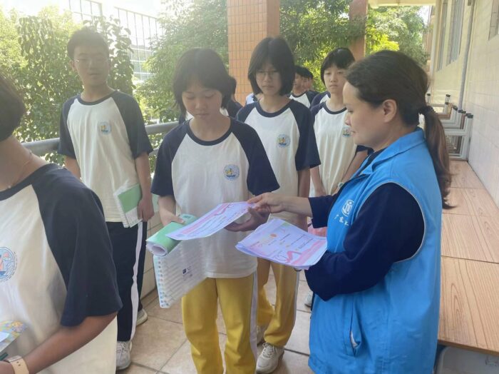 活动伊始,社工通过现场讲解的形式向同学们介绍社工站以及本次志愿者招募的相关要求。随后,社工邀请参加过社工站公益服务的老志愿者对志愿服务的要求、注意事项等方面作了详细的介绍,并把自己参加志愿服务后的收获、心得分享给现场的同学们。在志愿者的协助下,活动有条不紊的进行着。
